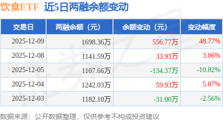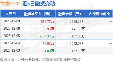 本站消息正规股票配资公司有哪些,12月9日,饮食ETF(159736)融资买入655.08万元,融资偿还98.31万元,融资净买入556.77万元,融资余额1698.36万元,近20个交易日中有11个交易日出现融资净买入。